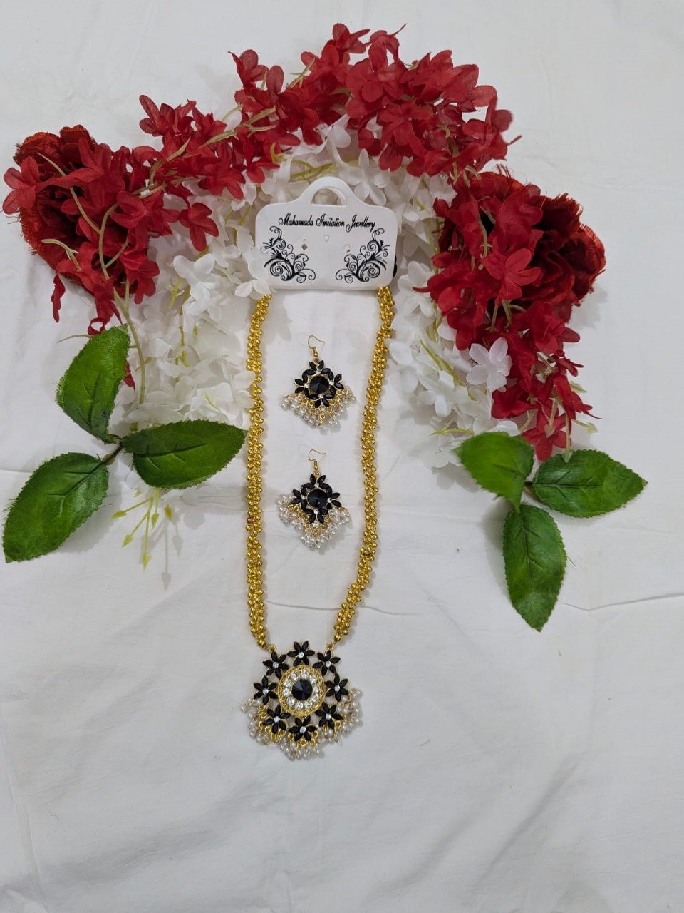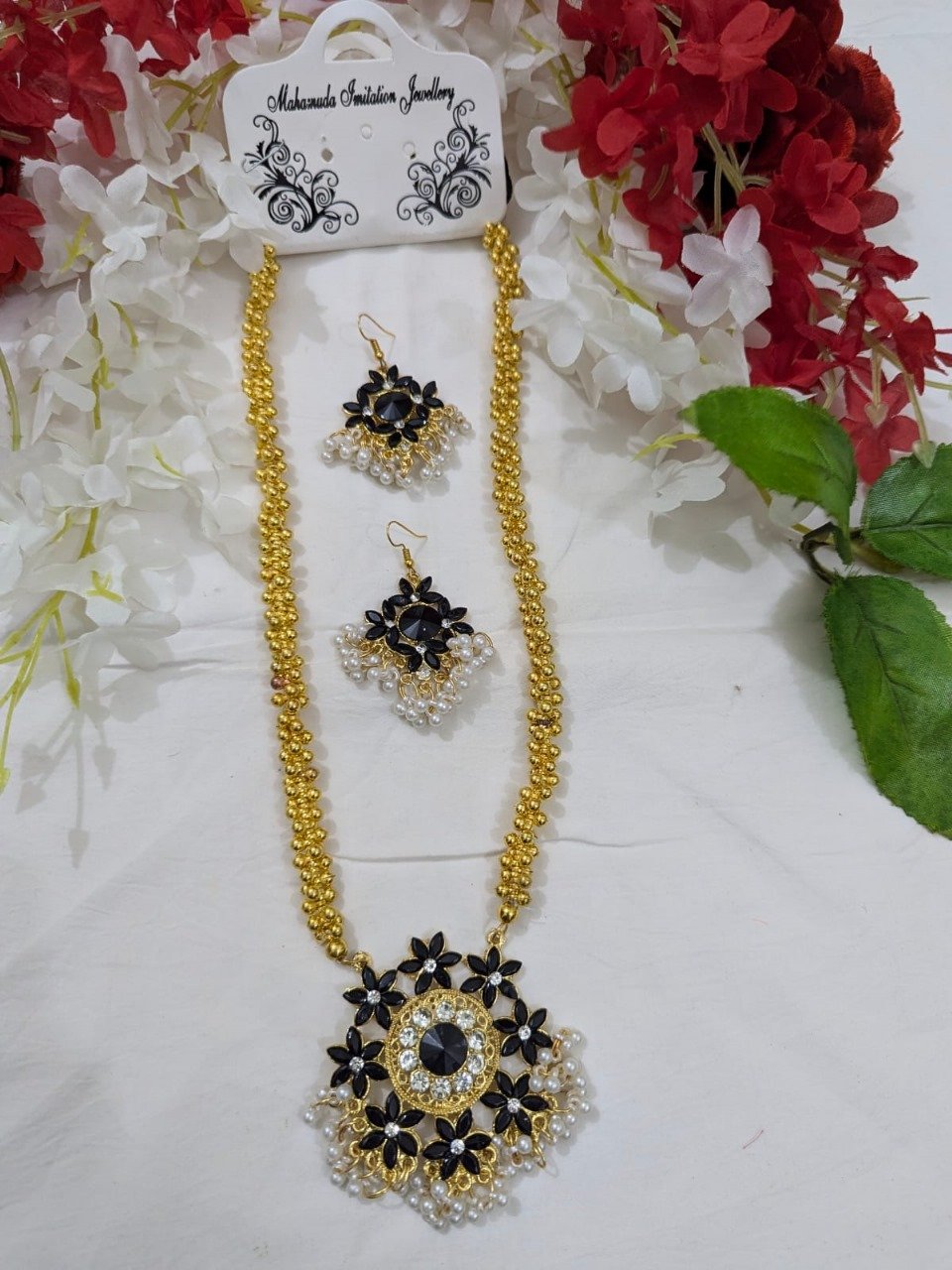 Embrace elegance and add this beautiful set to your collection today. With its refined design and versatile appeal, the Black Stone Work Long Necklace Set for Women promises to be a valuable addition to your jewelry collection.