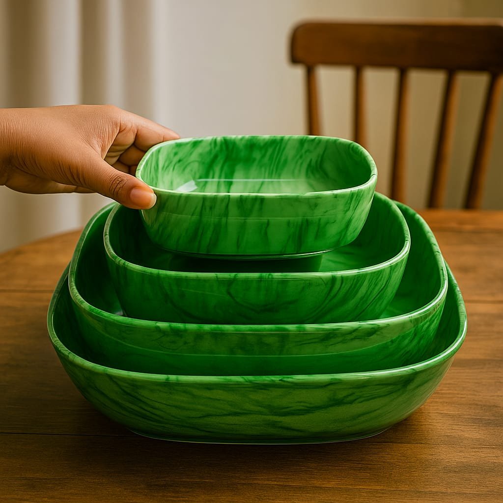 Marble Ceramic Different Size Of 4 Pieces Curry Bowl Set Square Shape