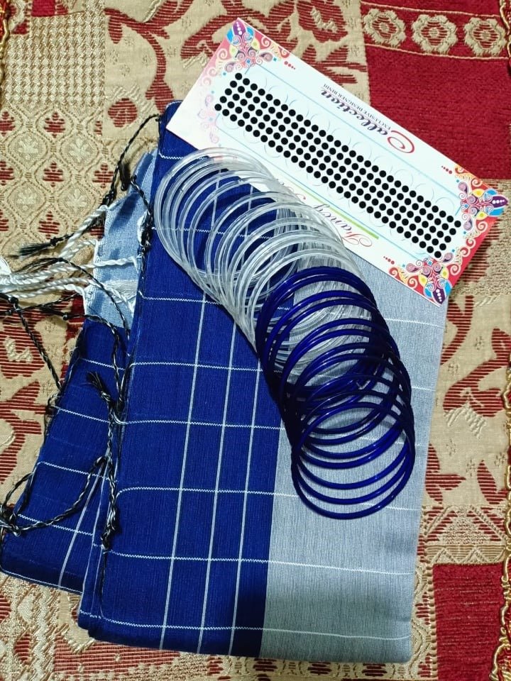 Elevate your wardrobe today with this exquisite combination of sarees and bangles—a celebration of heritage and elegance crafted exclusively for women who value tradition and beauty.