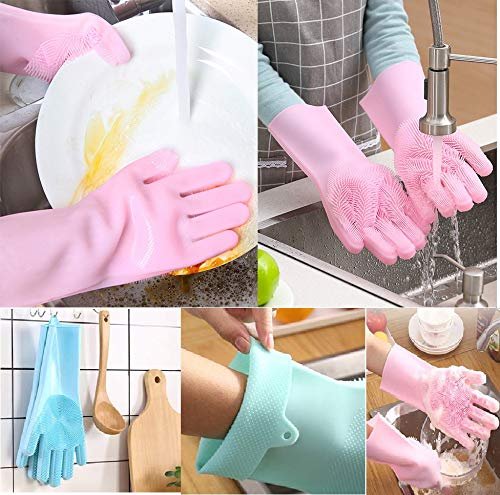 High Quality Silicone Dish washing Kitchen Hand Safety Gloves – Multicolour 2 Piece Set
