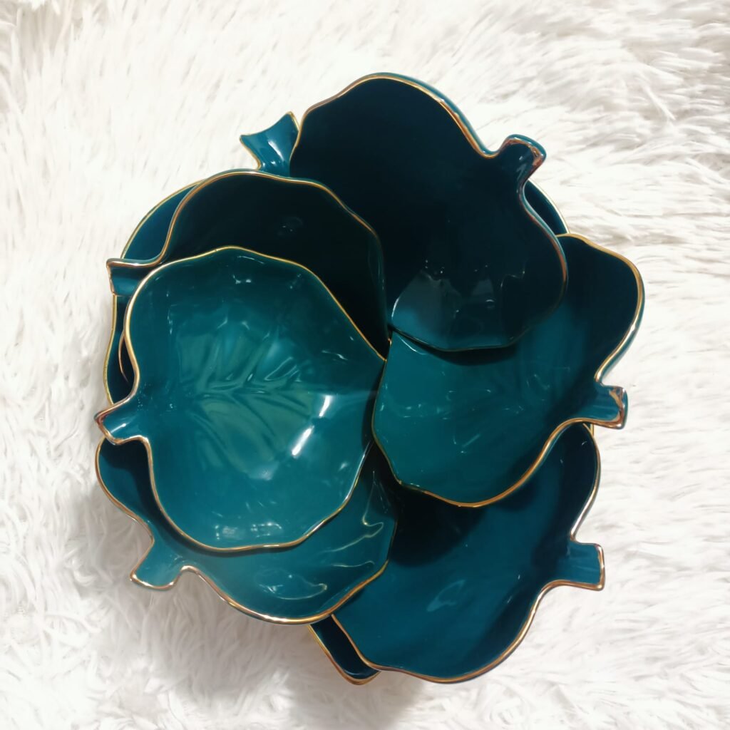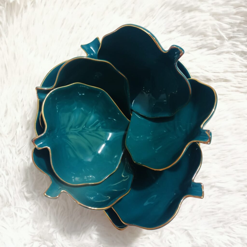 Transform your dining experience with the Maple Leaf Shape Ceramic New Design 7-Piece Dessert Bati Set. Perfect for serving desserts, firni, or any small culinary delight, this dining ware set combines sophisticated design with practical functionality. Its unmistakable leaf-inspired shape adds a touch of nature-inspired charm to your table, making it an ideal choice for modern homes and special occasions alike.