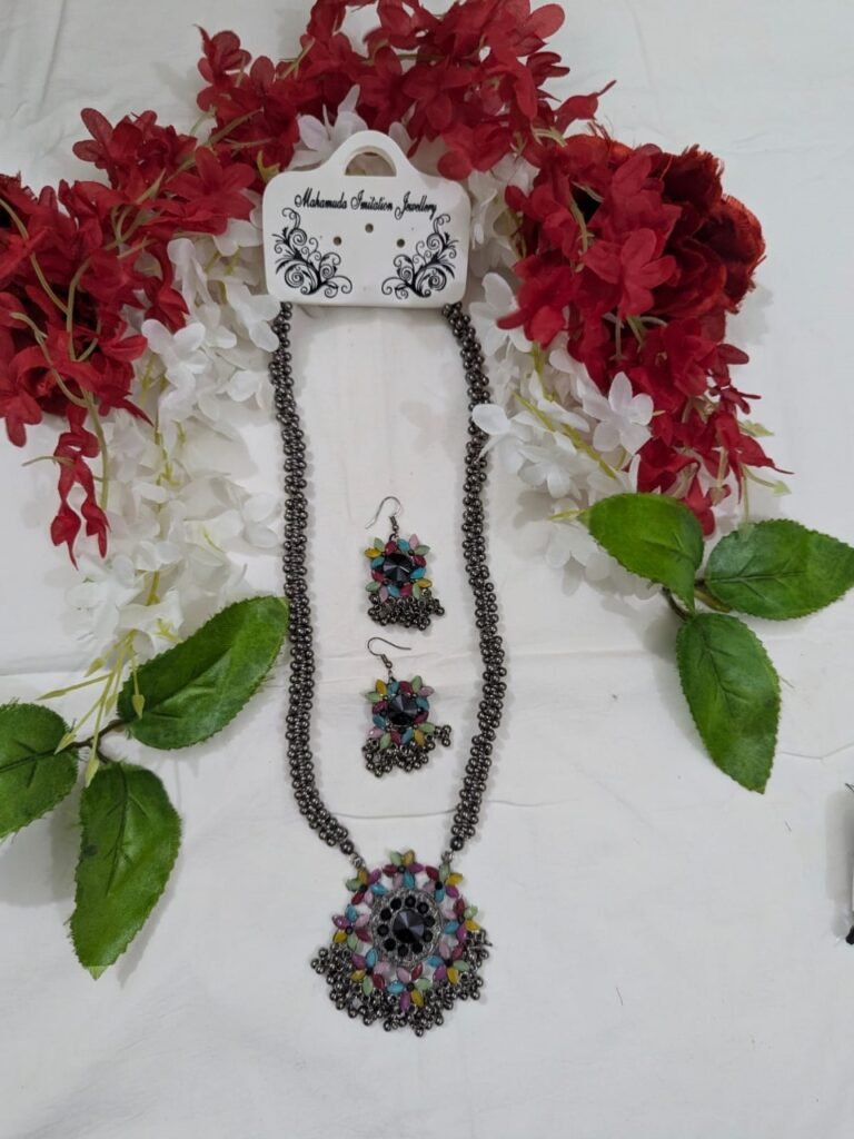 If you’re searching for a thoughtful gift for a loved one, look no further. This Multicolour Stone Work Black Antique Metal Long Necklace Set makes for a perfect present for birthdays, anniversaries, weddings, or festive events. Its unique design and exceptional craftsmanship promise to leave a lasting impression.