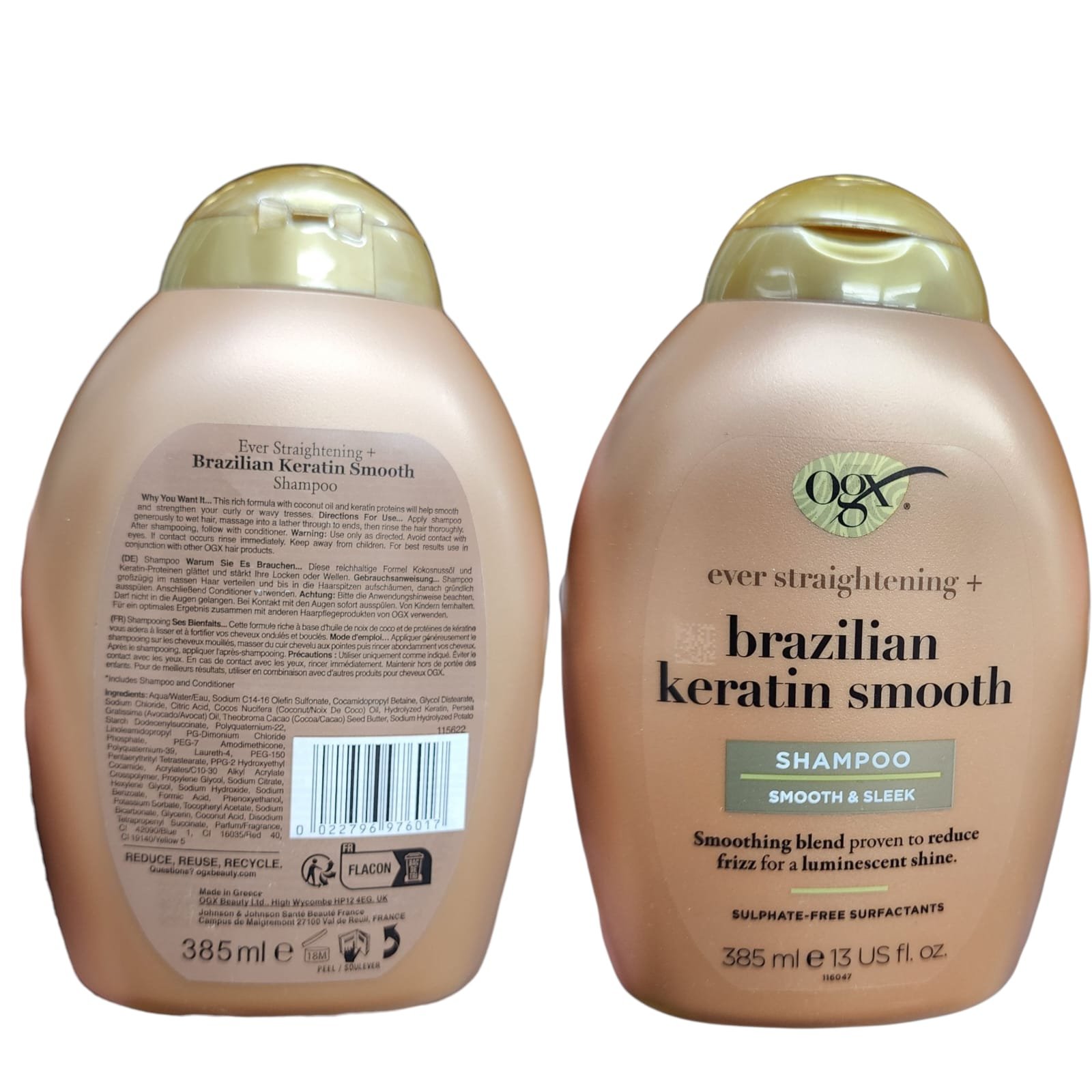 Experience the magic of OGX Brazilian Keratin Smooth Shampoo, where premium ingredients meet your quest for healthy, sleek strands. Crafted to infuse your hair with keratin proteins and a touch of Brazilian-inspired sophistication, this shampoo works wonders by gently cleansing while smoothing frizz and taming flyaways. Whether you’re looking to enhance shine or embrace a straighter style, this shampoo has got you covered, delivering salon-quality care at your fingertips.