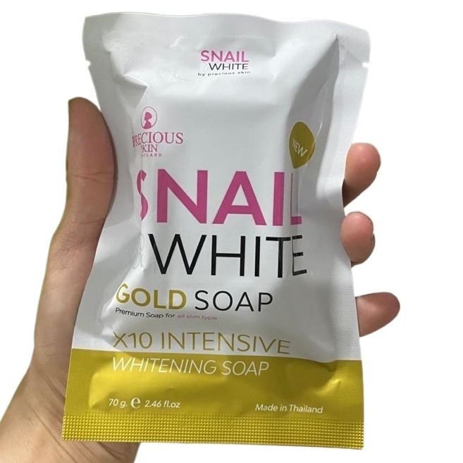 - Premium soap infused with snail mucus extract, gold flakes, and other skin-loving ingredients