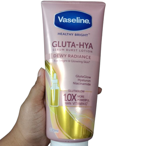 Embrace glowing, hydrated skin with Vaseline Healthy Bright Gluta-Hya Serum Brust Lotion Dewy Radiance. Add it to your skincare routine today to experience the elevated care your skin deserves, all housed in a convenient and chic bottle.