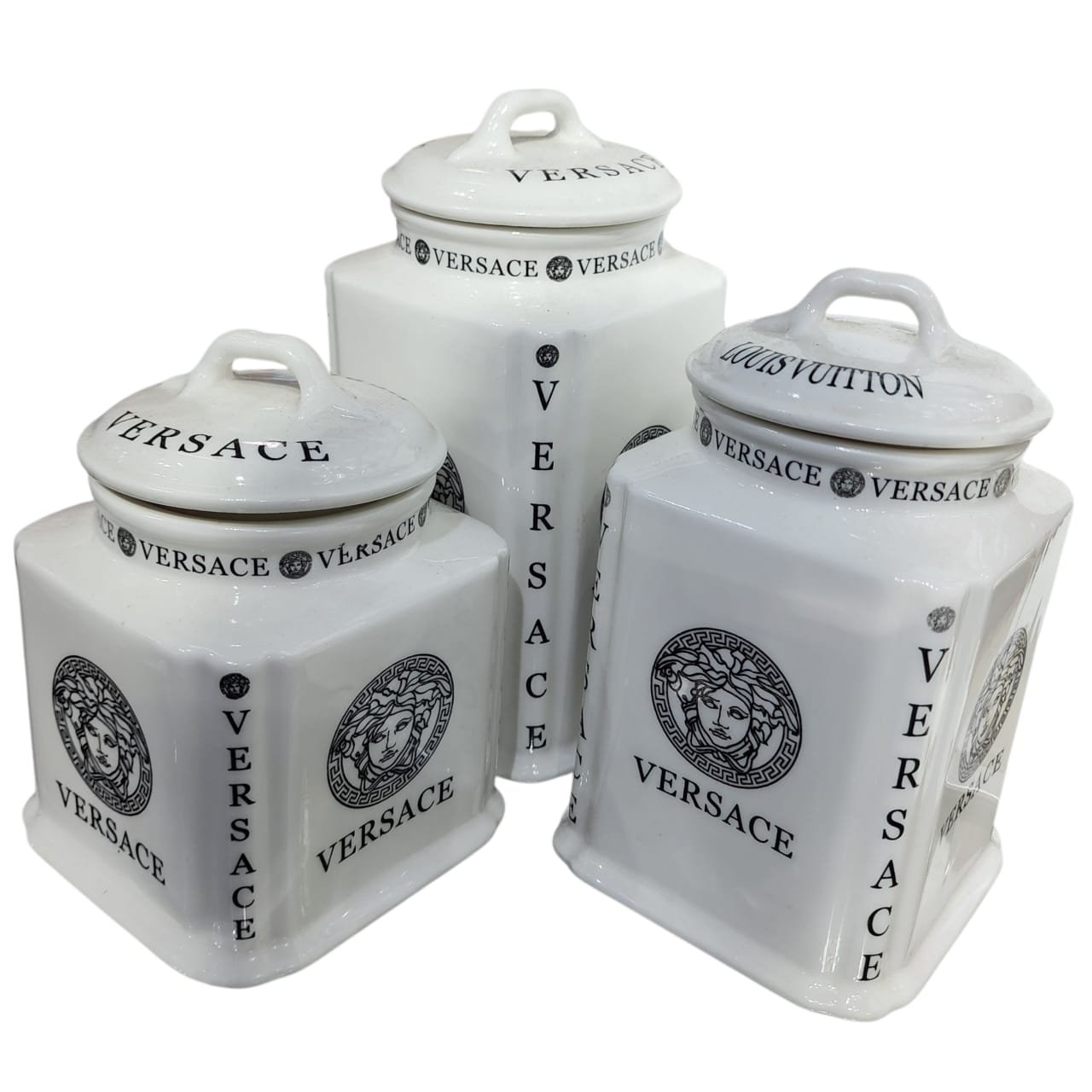 Versace Ceramic Jar set , Food Storage, Container , Jars – Kitchen Tools 3PCS SET/ Vintage Vibe